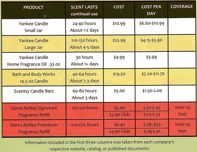 Cierra Ashley provides products for filling your home or office with enticing aromas in a safer and more affordable way than candles, wax warmers, supermarket plug-ins and aerosols. Long lasting scent with extensive coverage is Cierra Ashley's specialty!